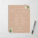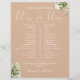 This stylish tan greenery wedding schedule-timeline can be personalised with your wedding details in chic typography. Designed by Thisisnotme©