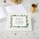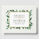 Greenery Watercolor Botanical Wedding Guest Book - features a printed white watercolor paper texture background with watercolor greenery surrounding a gold trimmed text box. Each leaf features various shades of green watercolor for a unique look.