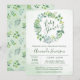 These greenery baby shower invitations feature a green leaf and foliage wreath in a watercolor style. They are part of a collection which includes other matching baby shower items that you can personalise. Please view the collection page or visit our store to see the full range.