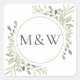 Greenery Watercolor Foliage Monogram Initials Square Sticker