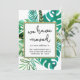 This modern green and white watercolor we have moved moving announcement card features fun hand script typography and beautiful tropical green foliage and boho greenery leaves with your change of address information.