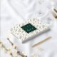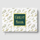 A simple yet eye-catching elegant seamless pattern featuring small watercolor leaves and sprigs in muted brown and green set against a stark white background that has a square dark teal blue / green inlay edged with real foil. A text template for your custom wording reads "guest book" on the front and your personalised title will appear on the spine. Both text templates are real foil too creating a timeless and luxury look to the cover.