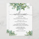 A greenery watercolor foliage card to welcome your wedding guests and let them know about your planned events. A compact card that can be added to a favour bag featuring a modern font (The script words are not editable).