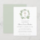 A customisable modern baptism affordable paper invitation featuring a delicate lily of the valley floral design surrounding an ornate gold print cross, on a clean background with elegant lettering.