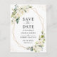 Greenery White Floral Gold Geometric Save the Date Postcard