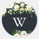 Greenery White Floral Royal Blue Monogram Wedding Classic Round Sticker