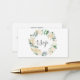 Elegant wedding RSVP business card with white and neutral watercolor floral wreath.