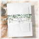 Stylish wedding invitation belly bands, features eucalyptus greenery foliage on a clean white background and customisable monograms.