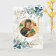 Greenery foliage with double gold frame Orthodox Christian birthday card. Customise with all of your details and preferences.