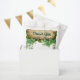 Celebrate your St. Patrick's Day wedding with a touch of vintage charm! This Irish wedding favour bag showcases a delightful combination of lovely greenery and elegant stripes. The upper part of the bag features wood with greenery and the heartfelt phrase 'Thank You', while a border of pale green stripes adds a stylish touch. While it may not feature the traditional clover design, the lush greenery and the use of Celtic font make this St. Patrick's Day wedding card a stunning display of beauty and elegance.