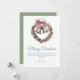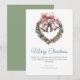 Elegant Greenery Wreath Bell & Pink Ribbon Bow Holiday Card. Featuring a beautiful holiday wreath with a classic bell and a soft pink ribbon accent, this design blends traditional Christmas elements with a modern, stylish touch. Perfect for sending warm wishes to family, friends, or colleagues, this card can be fully personalised with your own message and details. Available as a customisable and downloadable option.