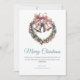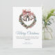 Greenery wreath bell & pink ribbon bow holiday card