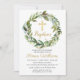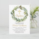 Greenery Wreath Gold Cross Boy Baptism Invitation