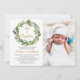 Greenery Wreath Gold Cross Boy Baptism Photo Invitation