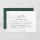 This RSVP card features simple white on dark green typography on the silhouette of a botanical garden's greenhouse for a modern and minimalistic wedding RSVP card for your upcoming wedding. All text is editable to fit your personalised needs.