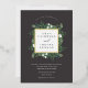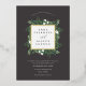 Our Greenhouse wedding invitation frames your names with an elegant square border of lush green foliage, botanical leaves, and tiny white flowers with gold foil trim. Personalise with your wedding details in classic lettering with a chic calligraphy script accent. A rich earth toned background provides a striking backdrop for your ceremony details. A beautiful choice for summer evening weddings, fall or autumn nuptials, or snowy winter weddings.