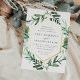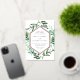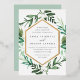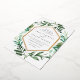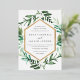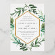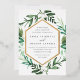 Choose these richly colored botanical wedding invitations for elegant winter weddings, fall or autumn nuptials, or evening weddings in the summer. Chic design combines natural and geometric elements for a fresh and modern look. Your wedding details appear in white lettering, framed by a gold foil border and surrounded by green foliage, lush leaves, and small white flowers on a crisp white background. Matching items available in our Greenhouse collection.