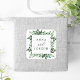 Seal your invitation envelopes or favors with these elegant winter botanical wedding stickers featuring your names framed by a square border of lush watercolor foliage in shades of green, on a crisp white background. Coordinates with our Greenhouse wedding collection.