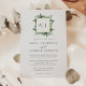 Our Greenhouse monogram wedding invitation features your initials, monogram or duogram at the top, nestled inside a square wreath of green watercolor foliage, botanical leaves and tiny white flowers on a crisp white background with gold foil trim. A modern take on the botanical trend for winter weddings, romantic fall or autumn nuptials, or elegant summer evening weddings.