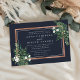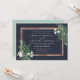 Choose these richly coloured botanical wedding invitations for elegant winter weddings, fall or autumn nuptials, or evening weddings in the summer. Chic landscape-orientated design combines natural and geometric elements for a fresh and modern look. Your wedding details appear in white lettering, framed by a faux copper foil border and accented by green foliage, lush leaves, and small white flowers at the corners. A deep navy blue adds richness and drama. Matching items available in our Greenhouse collection.