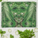 This Kitchen Towel features an intricate green pattern by ZoeSPEAK, made from an original photograph of palm fronds in the rain. The fresh greens are dotted with raindrops highlighting the curves of the larger leaves.