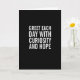 "Greet each day with curiosity and hope... and coffee. Lots of coffee". Funny card for sending a little inspiration and a chuckle at the same time! Modern black and white styling with bold typography.