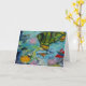 The picture on this greeting card is from an original artwork by assisted artist Scott Exelby. This abstract painting is called Underwater Playground and features lots of marine life frolicing in and amongst the beautiful and colourful coral of the Great Barrier Reef off the coast of Northern Queensland in Australia.