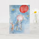 The cutest greeting card, with the cutest art. A baby flying in the sky with a Red Baloon and holding a bunny, that is so sweet. From my original painting watercolor on paper "Red Baloon"
