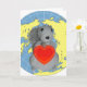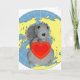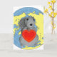 Grey squirrel presents an heart to the reader. Squirrel and acorn are created in crochet. Background is a diffused image of the earth. Inside text reads "I want to share my world with you" "Happy Valentines Day!".