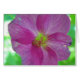 On this greeting map a pinkfarbene game bloom with yellow is to see serrated bloom centre. The background is lightgreen (neon-green). The map is in blank.