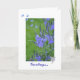 Beautiful greetings card with blue flowers, butterflies and fairy