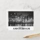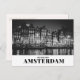This stunning black and white photograph captures the magic of Amsterdam at night, with the city's beautiful building lights reflecting on the canal. The front of the postcard reads "Greetings from Amsterdam." It's a unique and vintage-inspired piece that's perfect for lovers of travel and cityscapes.