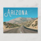 A postcard featuring a photo of a long stretch of highway through Arizona.