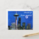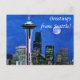 Blue watercolor version of the famous skyline of downtown Seattle, Washington under a full moon. Perfect postcard for Postcrossing or as a souvenir from your vacation.