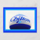 A closeup photograph of a white and blue water tower located in Chilton, Wisconsin is the subject of my "Greetings From Chilton Wisconsin!" postcard. A border in 2 shades of blue completes the front image of my postcard.