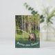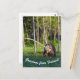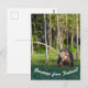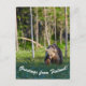 Greetings from Finland postcard featuring European brown bear (Ursus arctos) walking on a swamp in the evening light.