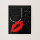 Greetings from Japan Red Lipstick Kiss Black Jigsaw Puzzle