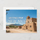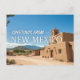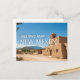 A modern postcard featuring a classic New Mexico adobe building against a backdrop of beautiful mountains and a clear blue sky. The warm, earthy tones of the architecture and landscape perfectly capture the unique aesthetic of the Southwest. The clean, contemporary "Greetings From NEW MEXICO" text makes this a stylish and authentic souvenir for anyone who loves the culture and scenery of the Land of Enchantment.