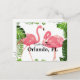 Greetings from Orlando, FL, tropical design with palm fronds and pretty pink flamingos