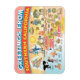 Bright and colourful scene offers a spectacular view of Southern California - wacky characters frolic on the beach and desert of SoCal showcasing Los Angeles, Orange County, San Diego, Santa Barbara, Riverside, Palm Springs, El Centro, Salton Sea, Anza Borrego and Joshua Tree parks as well as the border cities of Tijuana, Tecate and Mexicali. This charming scene has it all – a surfer hangs ten while a killer whale leaps out of the water, zoo animals greet the tourists, wine lovers make a toast as a hiker is noticed by a UFO and much more…