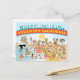 Bright and charming greeting card shows a whimsical cartoon of Southern California - cute characters enjoy the warm California sun who shines high above it all.