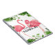 Greetings from Tampa, FL with pink flamingos and tropical palm trees design.
