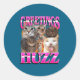Greetings Huzz Funny Cat Meme Bootleg Graphic Men Classic Round Sticker