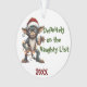 Proudly proclaim your little gremin's on Santa's Naughty List with this naughty list gremlin Christmas ornament.