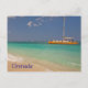 A peaceful relaxing scene on a tropical beach in Grenada with the surf lapping the beach and a catamaran moored in the crystal clear waters.