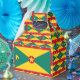 The Grenadian flag is a red field devided by two triangles of yellow and two of green with in the centre a red disc with a yellow star on it and on the bottom and top are three yellow stars. The used colours in the flag are red, green, yellow. The proportion of the Grenadian flag is 3:5. The Flag of Grenada was adopted in 1974. The first use of the current flag design was in 1974. The last change to the current Grenadian flag design was in 1974.
