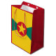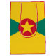 Design with flag of Grenada; red, green and yellow flag, white seven yellow stars