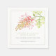 Botanical watercolor painting of Grevillea Loopy Lou an Australian native hybrid flower wedding napkins in shades of white, with a muted sage green, and a botanical painting with pink to coral to pale yellow flowers and evergreen green leaves. Personalise these wedding napkins with your own bride and groom's first, new family name, a wedding message, currently reads love, laughter & happily ever after, and wedding date. Ideal for an Australian native plant or protea floral theme wedding. Other matching wedding items are available. © Original watercolor grevillea painting and design by Sarah Trett for www.mylittleedenweddings.com.