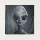 Grey Alien Watercolor Floral Portrait Tapestry