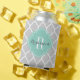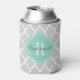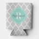 Grey and Aqua Moroccan Quatrefoil Monogram Can Cooler